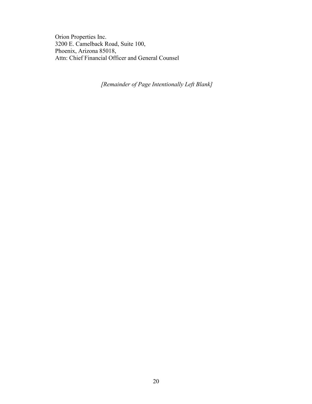 20 Orion Properties Inc. 3200 E. Camelback Road, Suite 100, Phoenix, Arizona 85018, Attn: Chief Financial Officer and General Counsel [Remainder of Page Intentionally Left Blank]